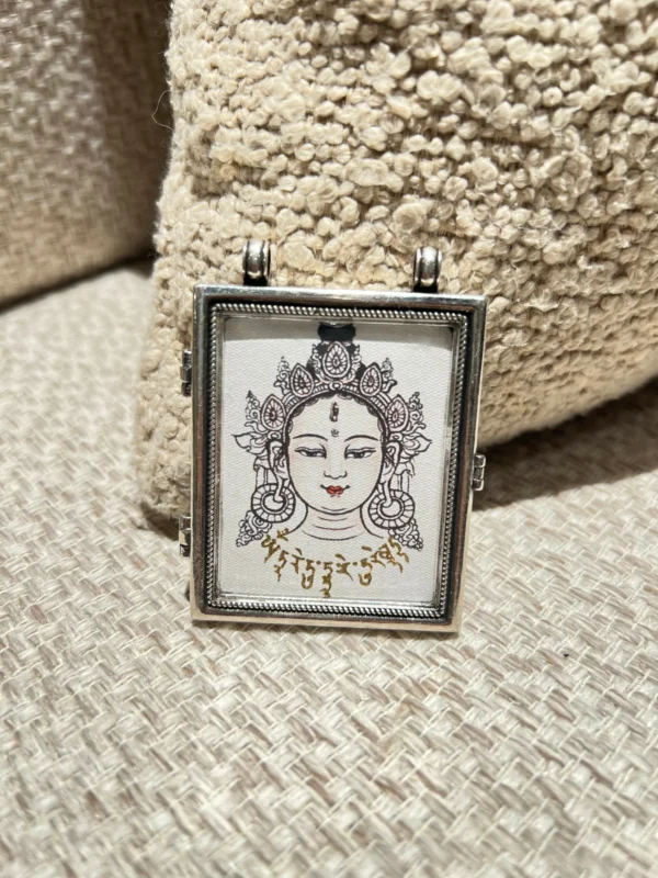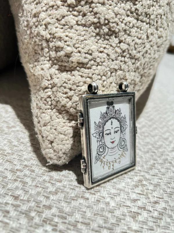 Handcrafted White Tara Pendant Necklace – Buddhist Artwork, Spiritual Amulet, Tibetan Jewelry