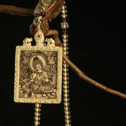 • Handcrafted Crowned Deity Thangka Pendant Necklace Handcrafted Crowned Deity Thangka Pendant Necklace – Traditional Tibetan Buddhist Art Piece, Ideal for Collection & Decoration