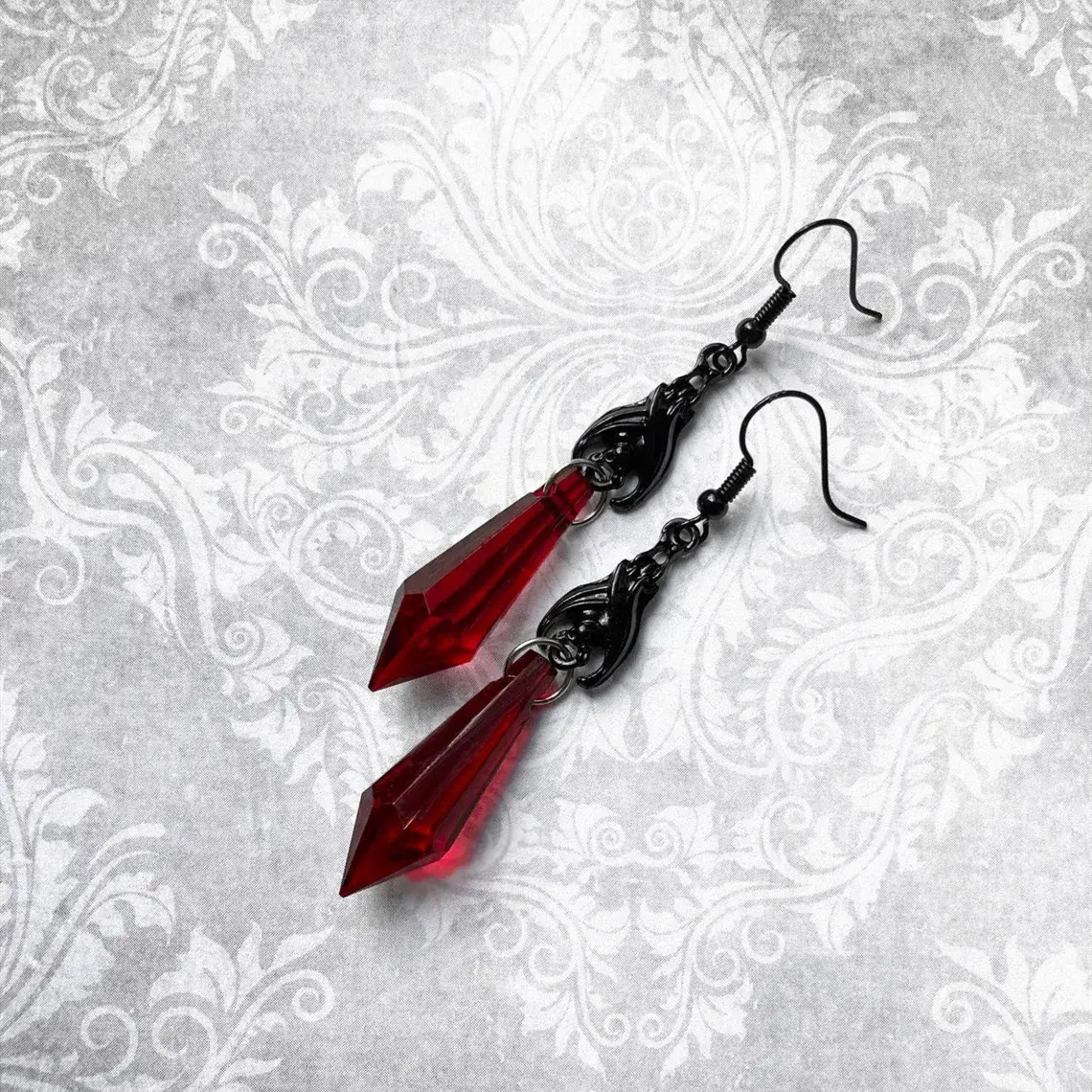 At 15g, these dangles provide a substantial, grounded feel that ensures they hang straight and steady. The faceted edges of the red drop catch the light with a moody glow, while the sturdy bat wings frame your face with dramatic confidence. Whether you are attending a midnight gala or layering for a casual goth look, these earrings provide an effortless dark grace.