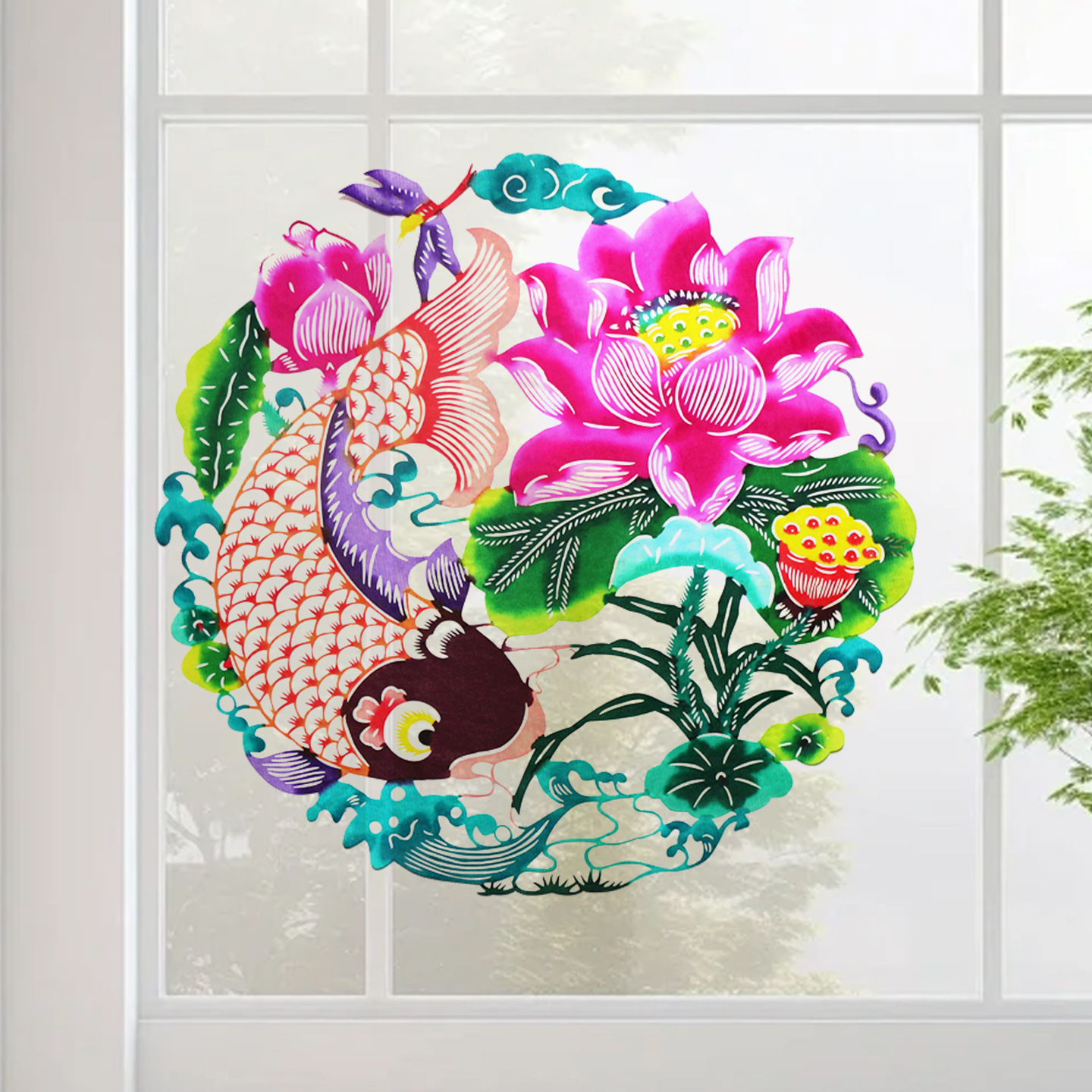 This handcrafted Chinese paper-cutting window decoration is made from traditional Xuan paper and carefully cut entirely by hand. Featuring double-sided color, the artwork remains vivid and expressive from both sides when displayed on a window or glass surface.