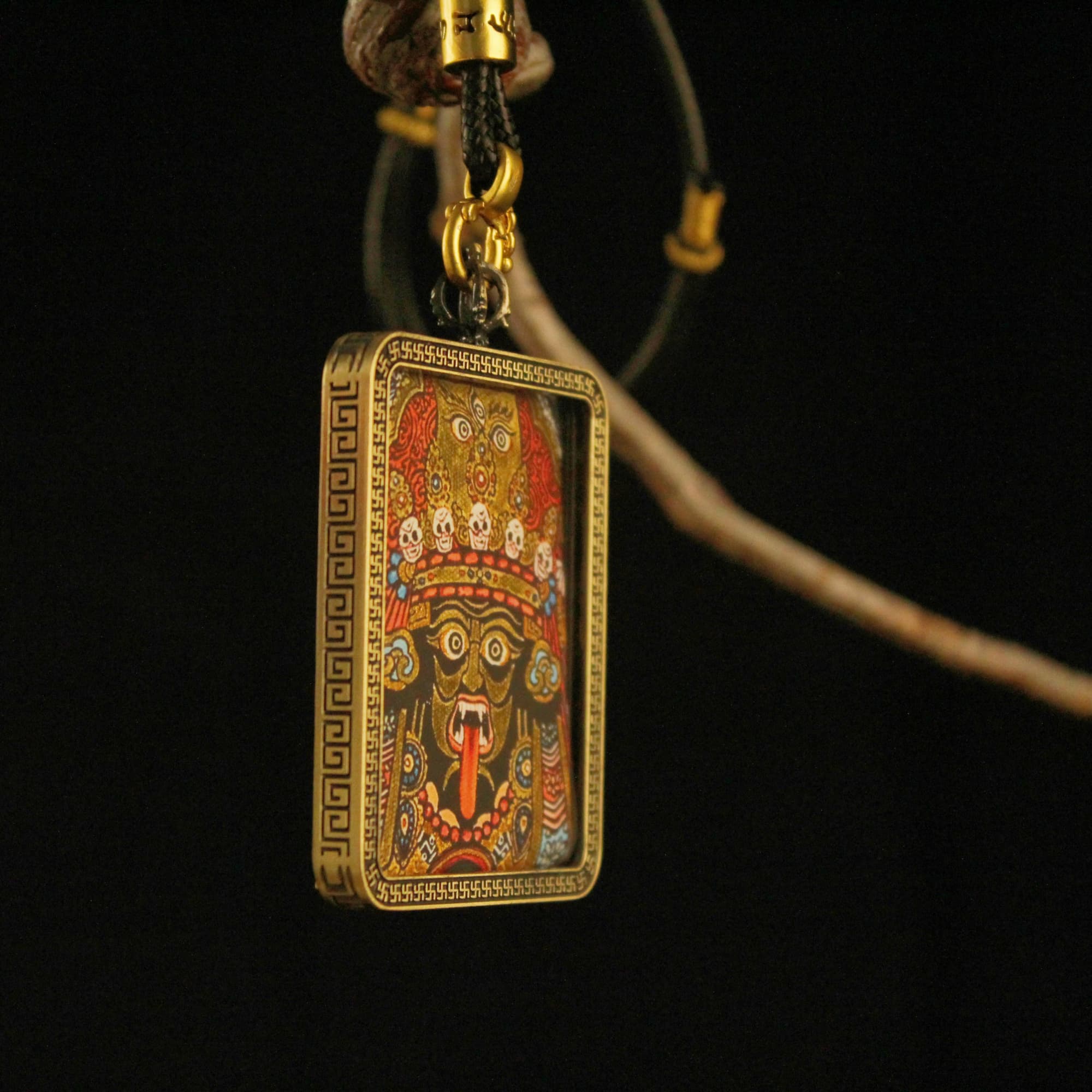 This exquisite handcrafted Thangka pendant necklace combines Tibetan Buddhist art with modern design. Made with high-quality materials and intricate craftsmanship, it is perfect for personal wear or as a collectible item. The Thangka design carries deep cultural significance, showcasing a solemn and sacred artistic style that brings peace and strength to the wearer.