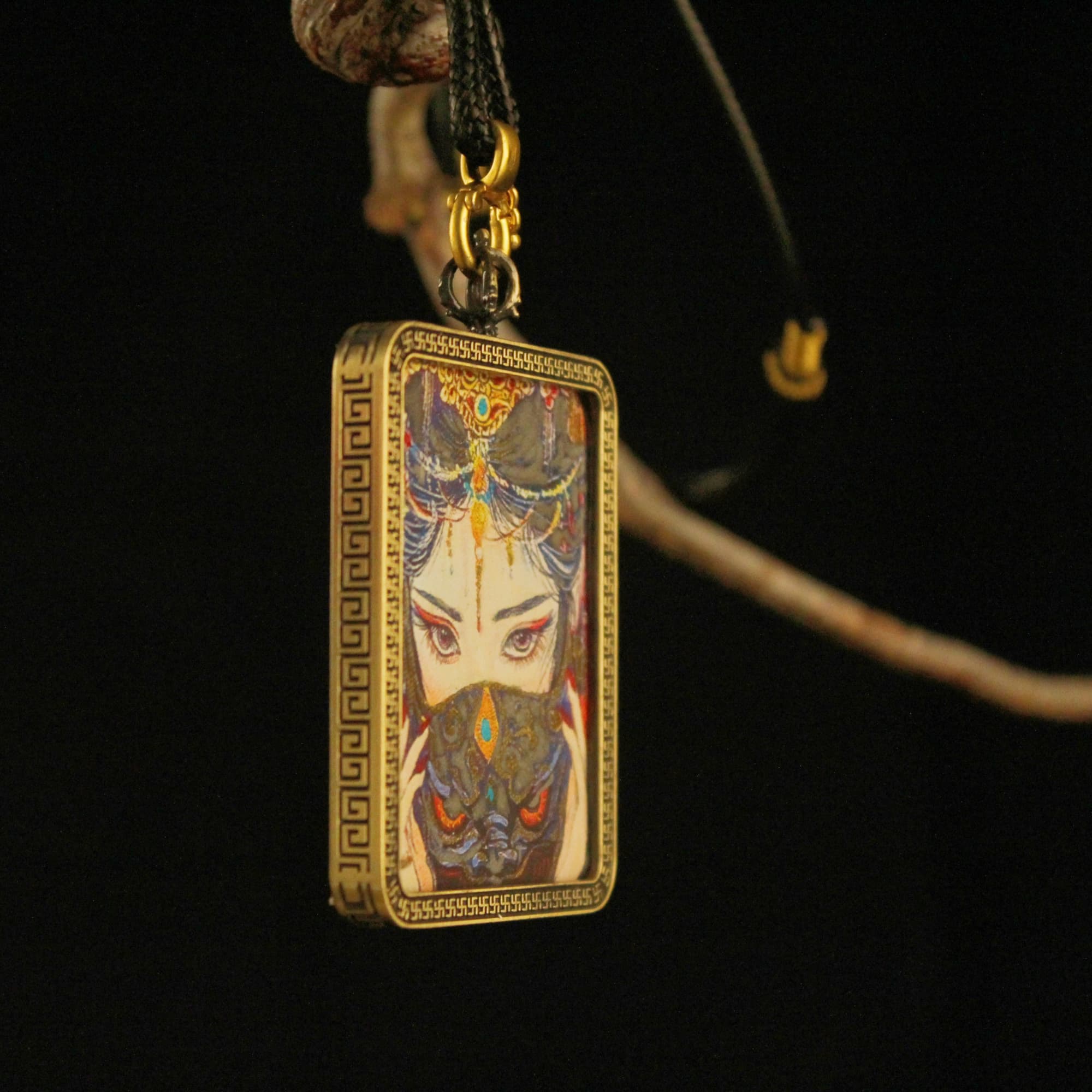 This Thangka-inspired pendant necklace reflects the visual essence of Tibetan Buddhist art, drawing upon classical motifs commonly found in traditional Thangka paintings. Created through a combination of fine hand-painting and detailed craftsmanship, each piece embodies precision, balance, and artistic discipline.