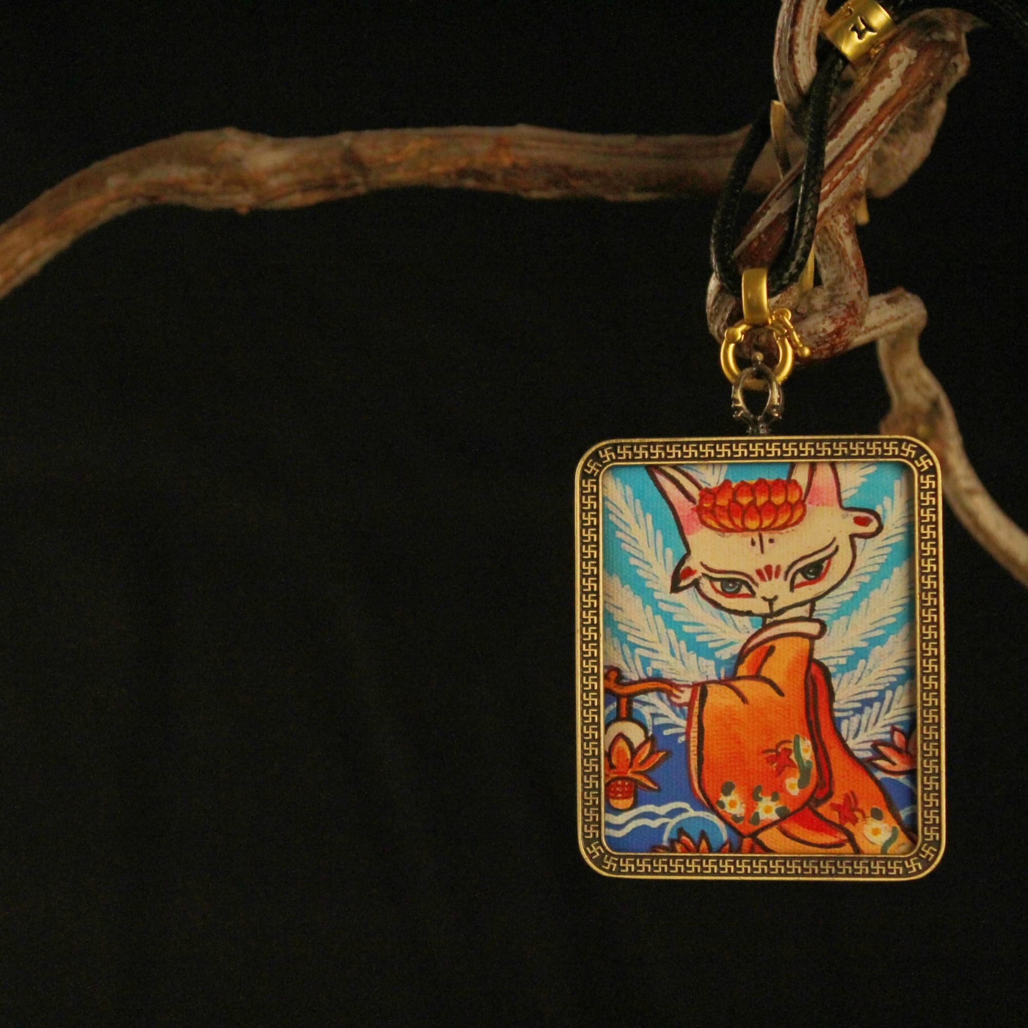 This exquisite handcrafted Thangka pendant necklace combines Tibetan Buddhist art with modern design. Made with high-quality materials and intricate craftsmanship, it is perfect for personal wear or as a collectible item. The Thangka design carries deep cultural significance, showcasing a solemn and sacred artistic style that brings peace and strength to the wearer.
