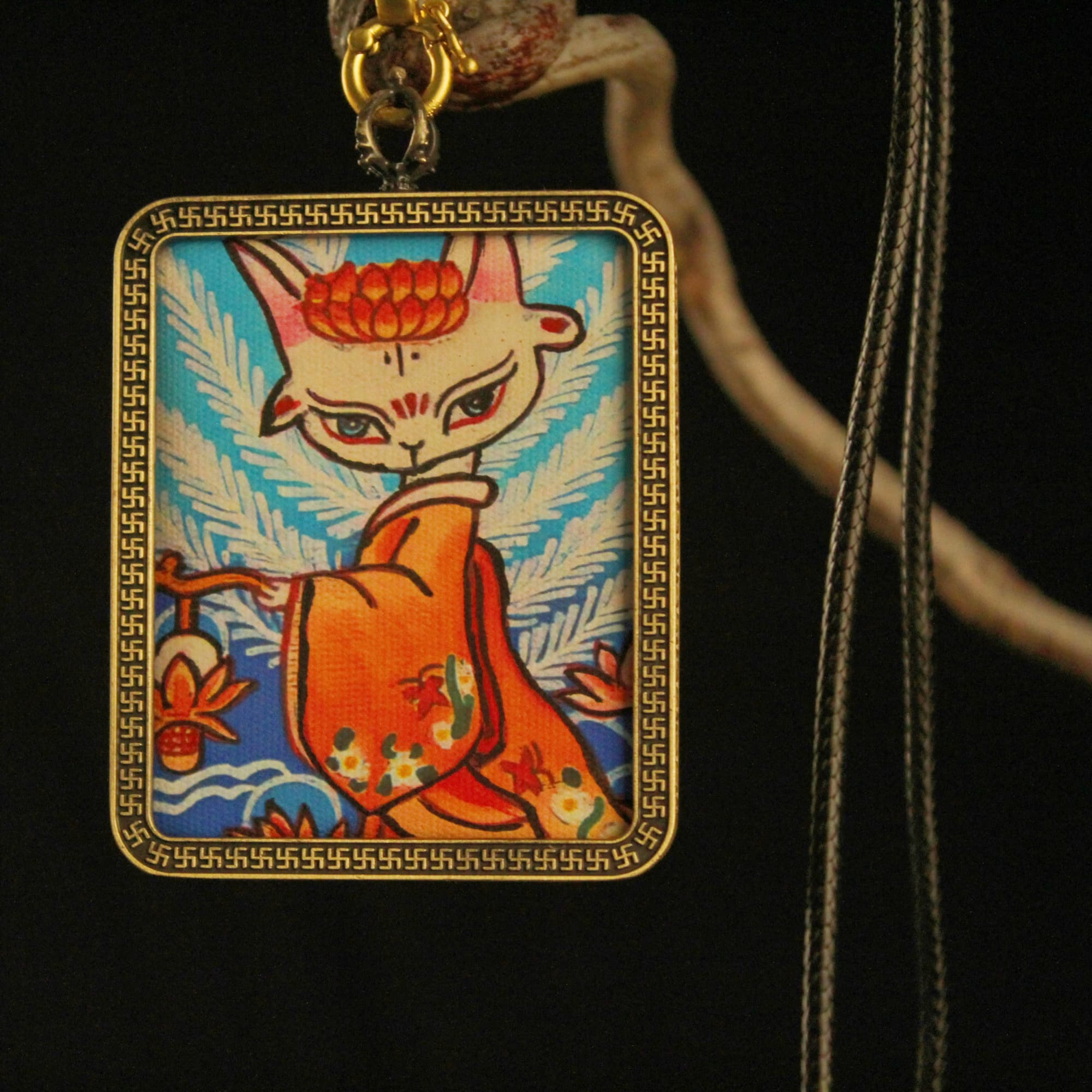This Thangka Painting pendant necklace showcases the essence of Tibetan culture, especially the sacred symbols found in Buddhist art. The Thangka is crafted using fine embroidery and hand-painting techniques, with every detail reflecting exceptional skill. The design is filled with symbolic meaning, conveying wisdom, strength, and protection. Made from high-quality metals and durable materials, the pendant is both sturdy and valuable for collectors. Its unique design and intricate craftsmanship make it an outstanding piece of art, perfect for any occasion. It serves not only as a fashion accessory but also as a symbol of cultural heritage.